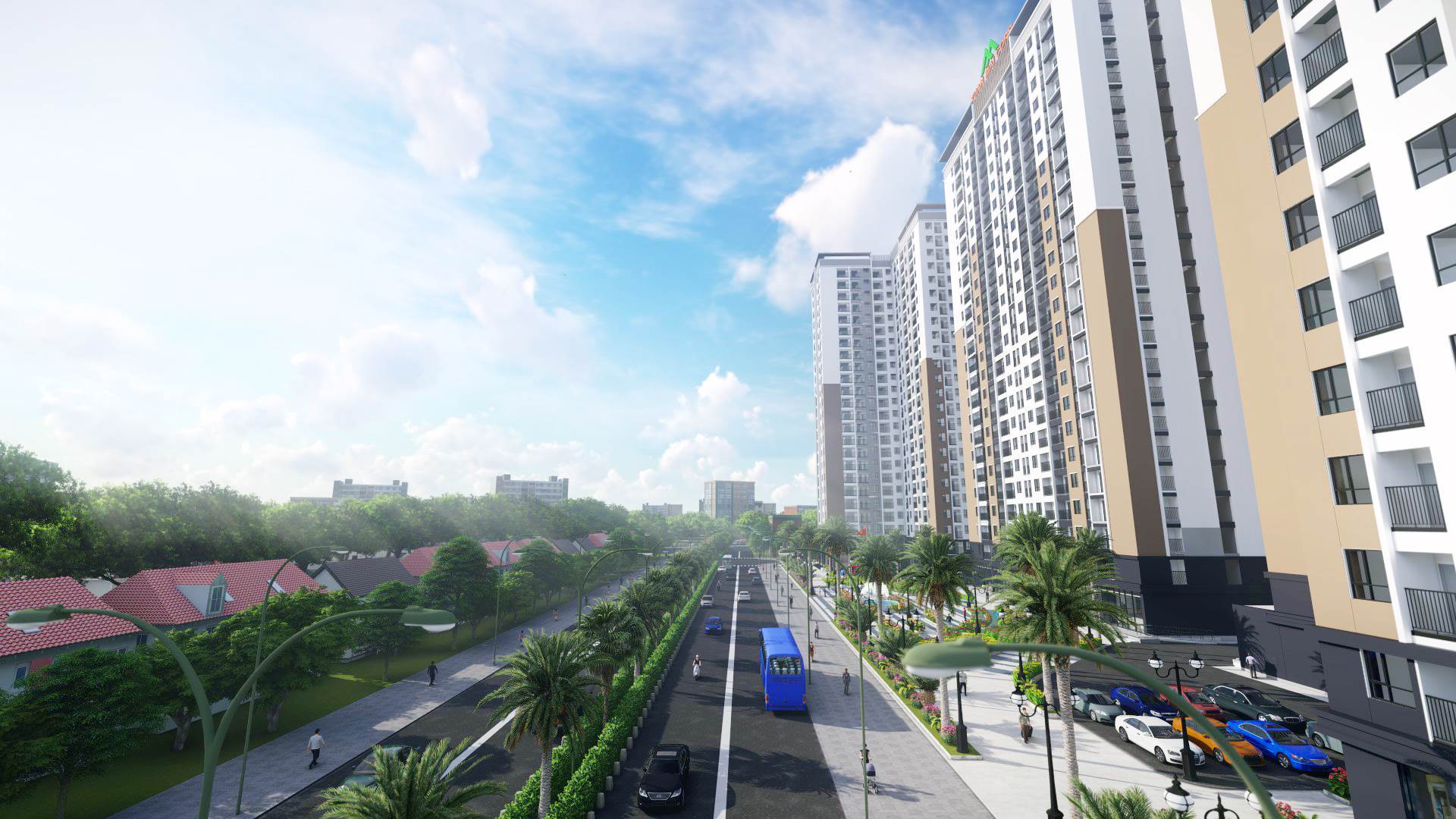 - Khu vườn thể thao trên không : Không gian thư giãn , khu đọc sách, sân chơi trẻ em, sân thể thao, vườn trà – café, khu tiểu cảnh, bồn cây kết hợp ghế ngồi…